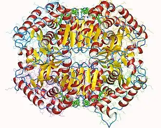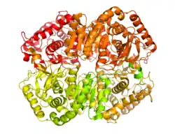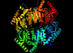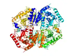 - ^ Millar DB, Frattali V, Willick GE (June 1969). "The quaternary structure of lactate dehydrogenase. I. The subunit molecular weight and the reversible association at acid pH". Biochemistry. 8 (6): 2416–21. doi:10.1021/bi00834a025. PMID 5816379.