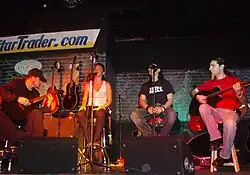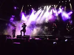 Comalies marked the beginning of a shift in the band's sound, as their "early repurposing of gothic metal evolved into something bigger, heavier and more accessible, it turned them into major players".[59] According to Blabbermouth, "the band's mastery of a certain strain of highly melodic but intermittently brutal gothic metal [on Comalies] enabled them to streak ahead of their peers"[60] The band subsequently shifted to an alternative metal sound.[60] Karmacode saw the band move away from their distinctive sound in favor of a nu metal sound. Sputnikmusic staff writer Trey wrote that the album "presented a band struggling to move beyond minor league success even if it meant losing their own individuality".[61] The band's follow-up, Shallow Life, was described by AllMusic as a "deliberately commercial effort with strong pop-metal influences".[57] Following the band's more experimental recordings, Dark Adrenaline saw the band combine "elements of the traditional Lacuna Coil sound [with] the more modern elements of later years".[62] Loudwire says that some of the band's albums have displayed a hard rock sound.[63]