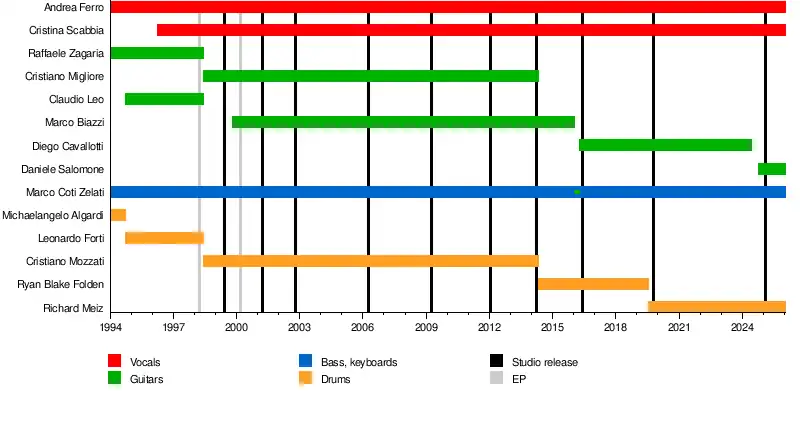 Lacuna Coil is an Italian gothic metal band from Milan. Since their formation in 1994, the group has had two name changes, being previously known as Sleep of Right and Ethereal,[1] and they have recorded ten studio albums, two extended plays, two live albums, two compilation albums, one video album, and sixteen singles and music videos.