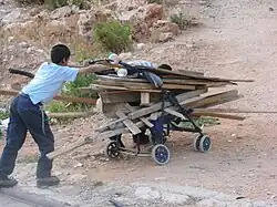 Israeli boys collect wood for a Lag BaOmer bonfire.
