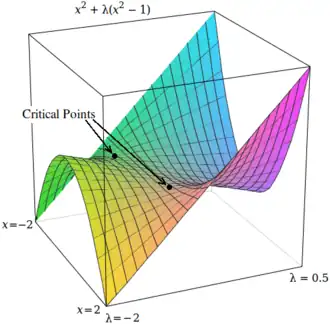 The critical points of Lagrangians occur at saddle points, rather than at local maxima (or minima).[4][17] Unfortunately, many numerical optimization techniques, such as hill climbing, gradient descent, some of the quasi-Newton methods, among others, are designed to find local maxima (or minima) and not saddle points. For this reason, one must either modify the formulation to ensure that it's a minimization problem (for example, by extremizing the square of the gradient of the Lagrangian as below), or else use an optimization technique that finds stationary points (such as Newton's method without an extremum seeking line search) and not necessarily extrema.