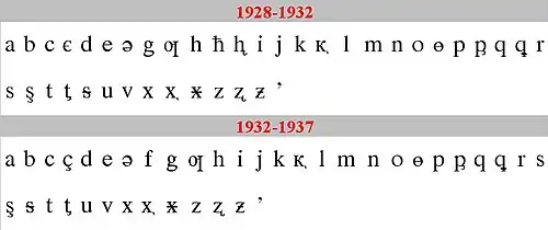 - ^ "Новый алфавит для народностей Дагестана". Культура и письменность Востока. Баку. 1928. pp. 176–177. Archived from the original on 2022-04-02.