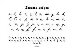 | Cyrillic (Lak alphabet) Latin (formerly) Arabic (formerly) | |