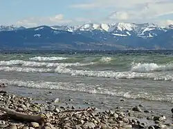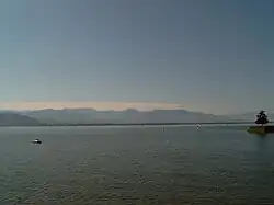 The current German name of Bodensee derives from the place name Bodman, which probably originally derived from the Old High German bodamon which meant "on the soils", indicating a place on level terrain by the lake.[9]: 500  This place, situated at the west end of Lake Überlingen (Überlinger See), had a more supraregional character for a certain period in the early Middle Ages as a Frankish imperial palace (Königspfalz), Alamannian ducal seat and mint, which is why the name may have been transferred to the lake ("lake, by which Bodman is situated" = Bodmansee). From 833 or 834, in Latin sources, the name appears in its Latinised form lacus potamicus.[10] Therefore, the name actually derived from the Bodman Pfalz (Latinized as Potamum) was wrongly assumed by monastic scholars like Walahfrid Strabo to be derived from the Greek word potamos for "river" and meant "river lake". They may also have been influenced by the fact that the Rhine flowed through the lake.[9]: 501ff