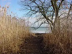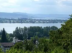 The Lower Lake Constance is loosely divided into three sections around the Island of Reichenau. The two German parts, the Gnadensee (lit.: "Lake Mercy") north of the island and north of the peninsula of Mettnau (the Markelfinger Winkel), and the Zeller See, south of Radolfzell and to the northwest of the Reichenau island, and the mainly Swiss Rheinsee (lit.: "Lake Rhine") – not to be mistaken for the Seerhein (lit.: "Rhine of the Lake(s)") at its start – to the south of the island and with its southwestern arm leading to its effluent in Stein am Rhein.[1][3]