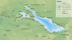 1. ^ a b c d e f g h i j k l m "Bodensee-Daten" (in German). igkb Internationale Gewässerschutzkommission für den Bodensee. June 2004. Archived from the original on 1 March 2018. Retrieved 28 February 2018.