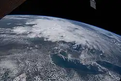 Algal blooms continued in early 2013, but new farming techniques, climate change, and even a change in Lake Erie's ecosystem make phosphorus pollution more intractable.[85] Blue-green algae (Cyanobacteria) bloom,[86] were problematic in August 2019. According to a news report in August, "scientists fully expect [it] to overwhelm much of western Lake Erie again this summer".[87] By August 12, 2019, the bloom extended for roughly 50 kilometres (31 mi).[88] A large bloom does not necessarily mean the cyanobacteria ... will produce toxins", said Michael McKay, executive director of the Great Lakes Institute for Environmental Research at the University of Windsor. "Not enough is being done to stop fertilizer and phosphorus from getting into the lake and causing blooms," he added. Water testing was being conducted in August.[89] The largest Lake Erie blooms to date occurred in 2015, exceeding the severity index at 10.5 and in 2011 at a 10, according to the NOAA. In early August, the 2019 bloom was expected to measure 7.5 on the severity index, but could range between 6 and 9.[90] At that time, satellite images depicted a bloom stretching up to 1,300 square kilometres (500 sq mi) on Lake Erie, with the epicenter near Toledo, Ohio.[91]