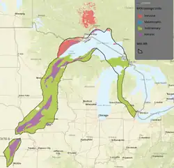 - ^ Regis, Robert S.; Jennings-Patterson, Carrie; Wattrus, Nigel & Rausch, Deborah (March 24–25, 2003). Relationship of Deep Troughs in the Eastern Lake Superior Basin and Large-Scale Glaciofluvial Landforms in the Central Upper Peninsula of Michigan. North-Central Section 37th Annual Meeting. Kansas City, Missouri: The Geological Society of America. Paper No. 19-10. Archived from the original on March 4, 2016. Retrieved April 1, 2015.
