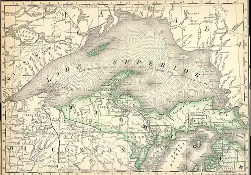 | Islands | Isle Royale, Apostle Islands, Michipicoten Island, Grand Island, Slate Islands |