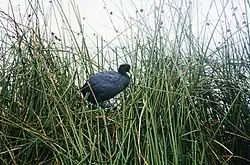 Andean coot among totora sedges