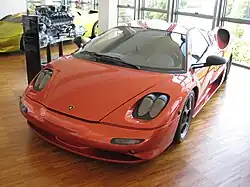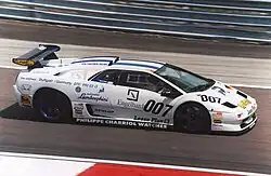 The car was presented in 1997 to the factory in the presence of FIA representatives who approved and homologated the car for racing. However, financial difficulties surrounding Lamborghini at that time forced the company to not go further with the project. Two cars were built, one was meant for racing and one was the road legal version which dropped the rear wing. The racing version was bought by the JLOC racing team from Japan, who used it in the All Japan Grand Touring Car Championship series from 1997 until 2000 with minimal success. From 2001 to 2003, the racing version competed under the Diablo JGT-1 guise, featuring a reworked chassis and suspension along with other parts independently built by JLOC for JGTC competition. However, it continued to struggle against the factory-backed entries in GT500 and JLOC subsequently retired the car in 2004.[41] The road version remained in the ownership of SAT until it was sold to Mistral Motors in Italy.[42][43]