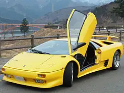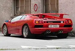 The Lamborghini Diablo (meaning "devil" in Spanish), is a series of high-performance V12, rear mid-engined sports cars in the supercar market segment, built by Italian automobile manufacturer Lamborghini from 1990 through 2001. It is the first production Lamborghini with a top speed in excess of 200 mph (322 km/h).