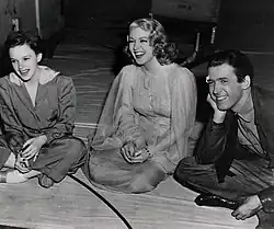 In 1940, Turner appeared in her first musical film, Two Girls on Broadway, in which she received top billing over established co-stars Joan Blondell and George Murphy.[66] A remake of The Broadway Melody, the film was marketed as featuring Turner's "hottest, most daring role".[66] The following year, she had a lead role in her second musical, Ziegfeld Girl, opposite James Stewart, Judy Garland and Hedy Lamarr.[74] In the film, she portrayed Sheila Regan, an alcoholic aspiring actress based on Lillian Lorraine.[75][76] Ziegfeld Girl marked a personal and professional shift for Turner; she claimed it as the first role that got her "interested in acting",[77] and the studio, impressed by her performance, marketed the film as featuring her in "the best role of the biggest picture to be released by the industry's biggest company".[78] The film's high box-office returns elevated Turner's profitability, and MGM gave her a weekly salary raise to $1,500 as well as a personal makeup artist and trailer ($33,666 in 2024 dollars [44]).[79] After completing the film, Turner and co-star Garland remained lifelong friends, and lived in houses next to one another in the 1950s.[80]