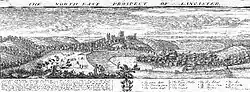 Little is known of Lancaster from the end of Roman rule to the early 5th century and the Norman Conquest of the late 11th century. Despite a lack of documentation for the period, it is thought that Lancaster remained inhabited. It lay on the fringes of the kingdoms of Mercia and Northumbria and over time may have passed from one to the other.[18] Archaeological evidence suggests there was a monastery on or near the site of today's Lancaster Priory by the 700s or 800s. The Anglo-Saxon runic "Cynibald's cross" found at the Priory in 1807 is thought to date from the late 9th century. Lancaster was probably one of several abbeys founded under Wilfrid.[19]