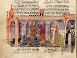 In the words of Matilda Bruckner, "what existed before Chrétien remains uncertain, but there is no doubt that his version became the starting point for all subsequent tales of Lancelot as the knight whose extraordinary prowess is inextricably linked to his love for Arthur's Queen."[20] According to Danielle Quéruel of the Bibliothèque nationale de France, "the character of Lancelot, as imagined by Chrétien, is a superb image of the courtly lover pushing the love he bears for his lady to the point of exaltation and ecstasy ... governed by love, Lancelot no longer knows how to see the world around him, he no longer knows who he is."[21]