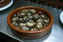 Cooked Spanish "caracoles a la madrileña", species Cornu aspersum