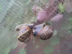 Most species of land snail are annual, others are known to live 2 or 3 years,[25][26] but some of the larger species may live over 10 years in the wild.[27] For instance, 10-year old individuals of the Roman snail Helix pomatia are probably not uncommon in natural populations.[28] Populations of some threatened species may be dependent on a pool of such long-lived adults.[29] In captivity, the lifespan of snails can be much longer than in the wild, for instance up to 25 years in H. pomatia.[30]
