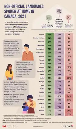 - ^ Government of Canada, Statistics Canada (2022-08-17). "NHS Profile, Canada, 2011 Non-official language". www12.statcan.gc.ca. Retrieved 2022-08-24.