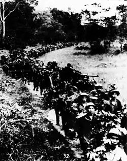 In opposition, the Viet Minh raised a subsidiary revolutionary movement, the Pathet Lao, starting with an initial guerrilla band of 25 in January 1949.[31]