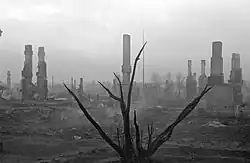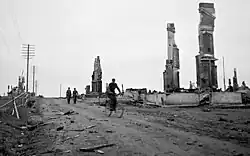 The 20th Mountain Army successfully withdrew most of its over 200,000 men as well as supplies and equipment from Lapland to continue defending occupied Finnmark from the USSR. According to American historian Earl F. Ziemke, "it had no parallel" as an evacuation across the Arctic in winter.[68] The casualties of the conflict were relatively limited: 774 killed, 262 missing and around 2,904 wounded Finns. Germany experienced around 1,000 deaths and 2,000 wounded. 1,300 German soldiers became prisoners of war and were handed over to the USSR according to the terms of the armistice.[8] The German delaying operations left Lapland devastated. In addition to 3,100 buildings demolished elsewhere in Finland, estimates of destroyed infrastructure in Lapland are as follows:[69][70]