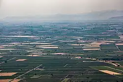 The climate of Larissa is cold semi-arid (Köppen: BSk) with some Mediterranean climate (Csa) characteristics such as the drier summers and the somewhat wetter winters.[24] The winter is cold, and some snowfalls may occur, though few of them are heavy. The summer is particularly hot, and temperatures near or above 40 °C (104 °F) typically occur every year for a few days. Thunderstorms during the summer months are sometimes heavy and may cause agricultural damage. Larissa receives about 413 mm (16 in) of rain per year and has an average annual average temperature of 15.4 °C (59.7 °F).[25]