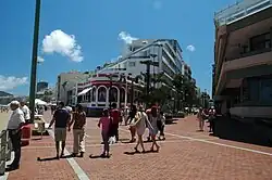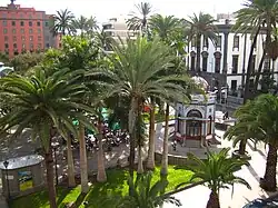 On November 20, 1485, the diocese was transferred from El Rubicón (Lanzarote) to Real de Las Palmas.[18] The importance of the city grew gradually, with the establishment of the Bishopric of the Canary Islands, the first Court of the Holy Inquisition, the Royal Court of the Canary Islands and the residence of the Captains General of the Canary Islands. Although the capital, as understood from the 19th century onwards, did not exist as such in the archipelago, given that the Captain General's Residence was in Las Palmas, it can be considered that this was the capital of the Canary Islands during part of the 16th and 17th centuries; afterwards, although without legal or real significance, it continued to be considered the honorary capital of the Canary archipelago.[18]