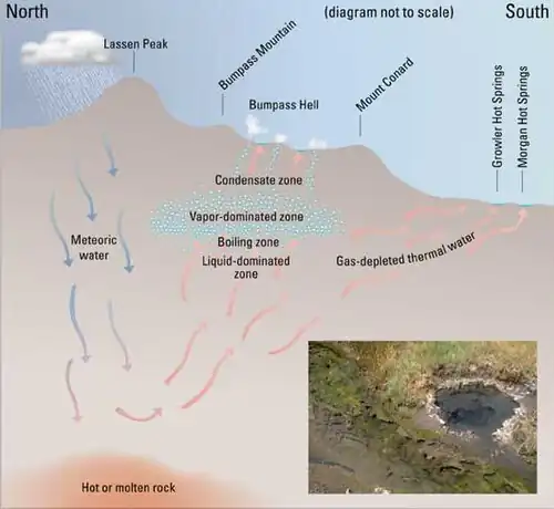 - ^ a b c d Clynne, M. A.; Janik, C. J.; Muffler, L. J. P. (December 4, 2009). Stauffer, P. H.; Hendley II, J. W. (eds.). ""Hot Water" in Lassen Volcanic National Park— Fumaroles, Steaming Ground, and Boiling Mudpots: U.S. Geological Survey Fact Sheet 101-02". United States Geological Survey. Archived from the original on October 1, 2017. Retrieved January 9, 2018.