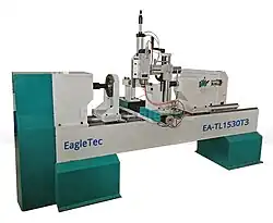 A lathe with a tool post that can rotate around a vertical axis, so as to present different tools towards the headstock (and the workpiece) are turret lathes.[17]