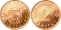 The initial standard Ls 2 coin was issued only once in 1992, it was a copper-nickel coin of 6g and measured 24.35mm in diameter.[24] It was gradually replaced in circulation from 1999 with the below bimetallic coin due to counterfeiting issues.[25]