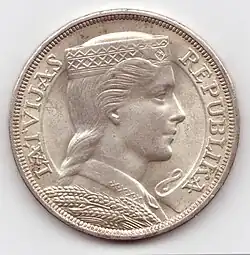 - ^ Similar to the 1929 silver five lats coin.