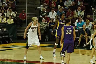 Jackson had a rivalry with American basketball player Lisa Leslie.[14][26] The rivalry reportedly started when Jackson was on tour in the United States with the Opals as a 16-year-old.[14] The rivalry intensified in 2000 at the Olympics in the gold medal match when Jackson purposely pulled off Leslie's hair extension while both were trying to grab a rebound. Jackson treated the incident as a joke, saying "It was something to joke about even though we lost the gold medal." Leslie did not feel the same way about the extension pulling incident.[14][26][27][28] The rivalry continued when Jackson transitioned to the WNBA and her Seattle Storm team played Leslie's Los Angeles Sparks, who at the time were the best team in the league. The rivalry was so intense that their coaches had to coach around it, sometimes choosing to keep one off the floor when the other was on. The coaches feared if they left the players on the floor together, their own player would foul out in an attempt to get the best of the other player.[14] Leslie and Jackson have played together as team members in the WNBA's All-Star game.[26] Their rivalry thawed somewhat by 2007 but they did not become friends.[27]
