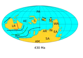 - ^ Cocks, L. Robin M.; Torsvik, Trond H. (May 2011). "The Palaeozoic geography of Laurentia and western Laurussia: A stable craton with mobile margins". Earth-Science Reviews. 106 (1–2): 1–51. Bibcode:2011ESRv..106....1C. doi:10.1016/j.earscirev.2011.01.007.