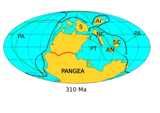- ^ Ziegler, Peter A. (1989). Evolution of Laurussia: a Study in Late Palaeozoic Plate Tectonics. Dordrecht: Springer Netherlands. ISBN 978-94-009-0469-9.
