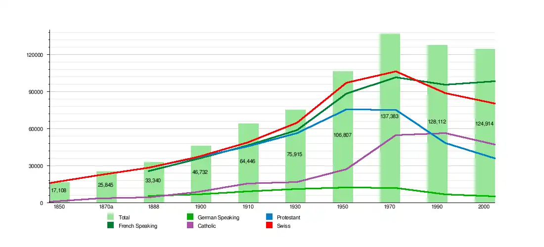 - ^ "Population totale selon l'origine, 1979–2013". Scris.vd.ch (Statistics) (in French). Contrôle des Habitants de la Ville de Lausanne / StatVD, canton de Vaud. 23 January 2014. Archived from the original (XLS) on 11 August 2014. Retrieved 8 August 2014.