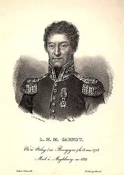 Lazare Nicolas Marguerite, Comte Carnot (French: [lazaʁ nikɔla maʁɡəʁit kaʁno]; 13 May 1753 – 2 August 1823) was a French mathematician, physicist, military officer, politician and a leading member of the Committee of Public Safety during the French Revolution. His military reforms, which included the introduction of mass conscription (levée en masse), were instrumental in transforming the French Revolutionary Army into an effective fighting force.