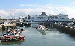 Administratively, Le Havre is a commune in the Normandy region in the west of the department of Seine-Maritime. The urban area of Le Havre corresponds roughly to the territory of the Agglomeration community of Le Havre (CODAH)[23] which includes 17 communes and 250,000 people.[24] It occupies the south-western tip of the natural region of Pays de Caux where it is the largest city. Le Havre is sandwiched between the coast of the Channel from south-west to north-west and the estuary of the Seine to the south.