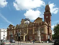 Leamington Spa falls under three tiers of local government, county, district and parish: it is a civil parish in the Warwick District, an administrative division of the county of Warwickshire, it thus falls under the jurisdiction of Warwickshire County Council, based in Warwick as the upper-tier authority. Between 1875 and 1974 Leamington was a municipal borough.[25] As part of the 1974 local government reform it was merged with Warwick, Kenilworth and Whitnash, and surrounding rural areas into the Warwick District, which has its offices in Leamington. Since the 2023 elections, Warwick District Council has been run by a coalition of the Labour Party and Green Party, it was previously run by a Conservative-led minority administration.[26]
