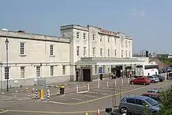 The London and North Western Railway opened the first railway line into Leamington; a branch line from Coventry in 1844, followed by a branch to Rugby in 1851. In 1852 the Great Western Railway's main line between Birmingham, Oxford and London opened through Leamington, upon which the first railway station at the current location was opened.[18][19]