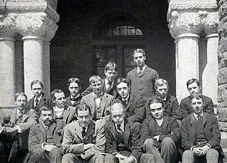 Hand's studious ways resulted in his election to Phi Beta Kappa, an elite society of scholarly students.[26] He graduated with highest honors, was awarded an Artium Magister degree as well as an Artium Baccalaureus degree,[27] and was chosen by his classmates to deliver the Class Day oration at the 1893 commencement.[26] Family tradition and expectation suggested that he would study law after graduation. For a while, he seriously considered post-graduate work in philosophy, but he received no encouragement from his family or philosophy professors. Doubting himself, he "drifted" toward law.[28]