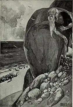 "Tuan watches Nemed", illustration by Stephen Reid in T. W. Rolleston's Myths & Legends of the Celtic Race, 1911