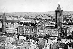 The city was only partly damaged in World War II. In June 1945 Legnica was briefly the capital of the Lower Silesian (Wrocław) Voivodship, after the administration was moved there from Trzebnica and before it was finally moved to Wrocław.[31] In 1947, the Municipal Library was opened, in 1948 a piano factory was founded, and in the years 1951-1959 Poland's first copper smelter was built in Legnica.[31] After 1965 most parts of the preserved old town with its town houses were demolished, the historical layout was abolished, and the city was rebuilt in modern form.[32]