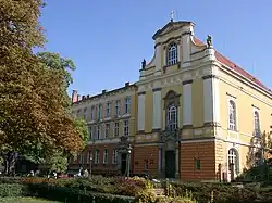 Legnica (Polish: [lɛɡˈɲit͡sa] ⓘ; German: Liegnitz, pronounced [ˈliːɡnɪts] ⓘ; Czech: Lehnice; Latin: Lignitium) is a city in southwestern Poland, in the central part of Lower Silesia, on the Kaczawa River and the Czarna Woda.[2] As well as being the seat of the county, since 1992 the city has been the seat of the Diocese of Legnica. As of 2023, Legnica had a population of 97,300 inhabitants.[1]