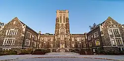Lehigh University is located in Bethlehem, Pennsylvania,[2] in the historically industrial Lehigh Valley region of eastern Pennsylvania. As of 2025, Lehigh encompasses 2,350 acres (9.5 km2), including 180 acres (0.73 km2) of recreational and playing fields, and 150 buildings comprising four million square feet of floor space.[13]