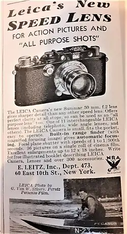 An advert in Time magazine for Leica's new Summar lens, March 5, 1934