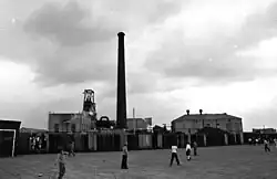 Mining disasters in Leigh included the explosion of firedamp which caused the deaths of 38 miners at Bedford Colliery on 13 August 1886.[28] There were several accidents at Bickershaw Colliery, but the most serious was in 1932, when 19 men were drowned in the sump at the bottom of the shaft after an overwind of the cage.[29][30]