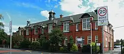 Under the terms of the Poor Law Amendment Act 1834 the townships formed part of Leigh Poor Law Union, established on 26 January 1837 and responsible for an area covering the whole of the ancient parish and part of Winwick. Workhouses in Pennington, Culcheth, Tyldesley and Lowton were replaced by Leigh Union workhouse at Atherleigh in the 1850s.[38] In 1875 Leigh Local Board of Health was established, covering the areas of the former Bedford, Pennington and Westleigh Local Boards of Health. In 1894 the area of the Local Board, together with part of Atherton township, became Leigh Urban District, which was granted honorific borough status in 1899 becoming the Municipal Borough of Leigh.