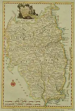 The last major boundary changes within Leinster occurred with the formation of County Wicklow (1603–1606),[13] from lands in the north of Carlow (which previously extended to the sea) and most of southern Dublin.[14] Later minor changes dealt with "islands" of one county in another. By the late 1700s, Leinster looked as shown in the above map of 1784.