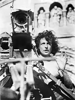 On one of her adventures, Riefenstahl met Luis Trenker, an actor who had appeared in Mountain of Destiny.[21] At a meeting arranged by her friend Gunther Rahn, she met Arnold Fanck, the director of Mountain of Destiny and a pioneer of the mountain film genre.[21] Fanck was working on a film in Berlin. After Riefenstahl told him how much she admired his work, she also convinced him of her acting skill.[21] She persuaded him to feature her in one of his films.[21] Riefenstahl later received a package from Fanck containing the script of the 1926 film The Holy Mountain.[21] She made a series of films for Fanck, where she learned from him acting and film editing techniques.[21] One of Fanck's films that brought Riefenstahl into the limelight was The White Hell of Pitz Palu of 1929, co-directed by G. W. Pabst.[21] She had to undergo many physical challenges that would probably be deemed unethical in today's standards. Some of the torments included: being engulfed in small avalanches, jumping into mountain lakes and icy streams, climbing rocky pinnacles while barefoot, letting herself be pulled up a rock face being pelted by snow and ice, balancing on a ladder above a deep glacial crevasse, and enduring obscene jokes from her exclusively male colleagues.[22] Her fame spread to countries outside Germany.[21][14]