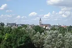 In 1849, coal was discovered in Lens after surveys were carried out at Annay, Courrières and Loos-en-Gohelle. This led to the expansion of the city into an important industrial center as part of the Nord-Pas de Calais Mining Basin.[7] The Lens Mining Company was founded in 1852 and experienced large profits.[8] The city, occupied from 1914 to 1918, was largely destroyed in the First World War and its population of 18,000 fell by half.[9] In World War II, the Allies bombarded the city from the air, leaving 500 dead and 1,000 buildings destroyed.[10] A new Hôtel de Ville was erected in 1965.[11]