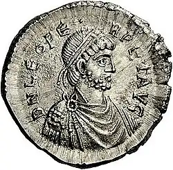 1. ^ The traditional identification with Leo I is not certain.[1][2] The head depicts the emperor with a short beard, which matches some coins of Leo I.